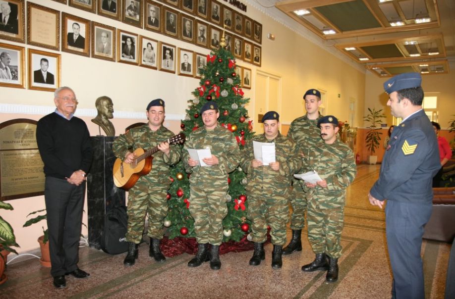 Οι μπάντες μπάντες του Πολεμικού Ναυτικού και της 5ης Ταξιαρχίας Πεζικού (V Μεραρχίας Κρητών), όπως και, για πρώτη φορά φέτος, τους Στρατιώτες από το Πεδίο Βολής Κρήτης που ασχολούνται με τη μουσική, έψαλαν τα κάλαντα στον Μέγαρο Περιφερειακής Ενότητας Χανίων και στον αντιπεριφερειάρχη Απόστολο Βουλγαράη.