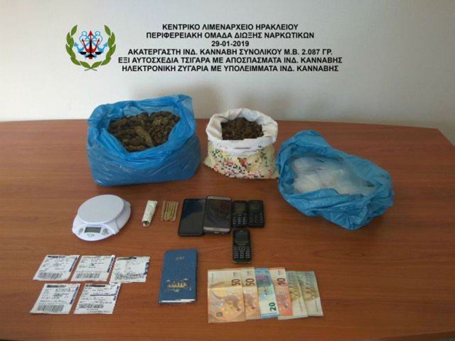 Πάνω από 2 κιλά ινδικής κάνναβης έκρυβαν στις χειραποσκευές τους δυο αλλοδαποί, ένας 29 ετών και ένας 21 ετών οι οποίοι ταξίδεψαν με το πλοίο της γραμμής από Πειραιά προς Ηράκλειο.