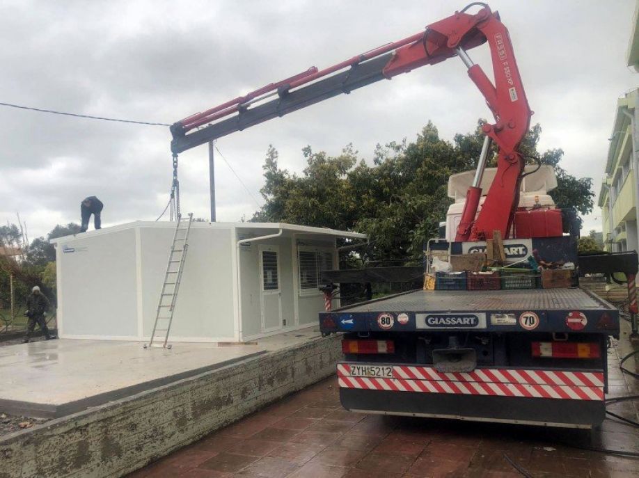 προκατασκευασμένων εκπαιδευτικών αιθουσών στα σχολικά συγκροτήματα Αλικιανού και