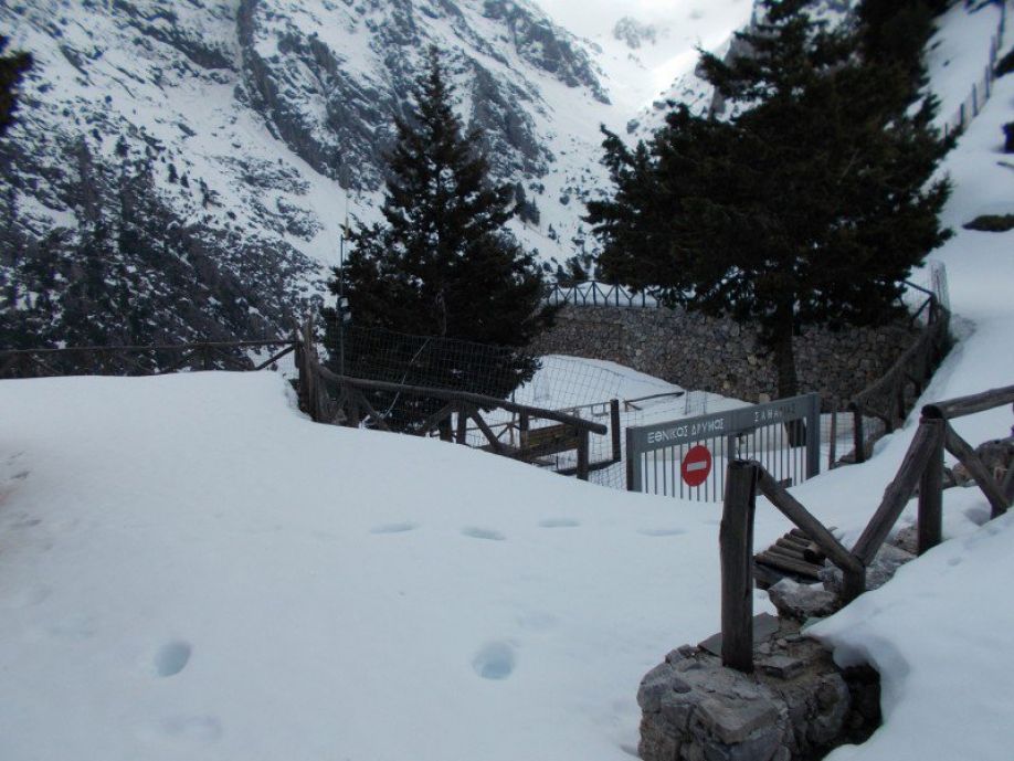 Η κ.Ελένη Πατεράκη, Δασοπόνος και οι κ.Γεώργιος Σωμάκης και κ.Μάρκος Νενεδάκης, Δασοφύλακες, διέσχισαν το φαράγγι της Σαμαριάς από τη χιονισμένη βόρεια είσοδο στο Ξυλόσκαλο μέχρι τη νότια στον παραθαλάσσιο οικισμό της Αγίας Ρουμέλης. Διέμειναν δύο βράδια στον οικισμό της Σαμαριάς, εντός του φαραγγιού, εκτέλεσαν απαραίτητες εργασίες και αξιολόγησαν την κατάσταση στην οποία βρίσκεται ο Δρυμός μετά τα καταστροφικά πλημμυρικά φαινόμενα που έπληξαν τα Χανιά.