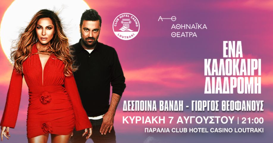 Την Κυριακή 7 Αυγούστου, με την δύση του ήλιου, η εκρηκτική Δ. Βανδήκαι ο μοναδικός Γ. Θεοφάνους, θα εμφανιστούν στο ειδικά διαμορφωμένο stageτης promenadeτου ClubHotelCasinoLoutrakiσε ένα ατελείωτο πάρτι που όλοι ονειρεύονται.